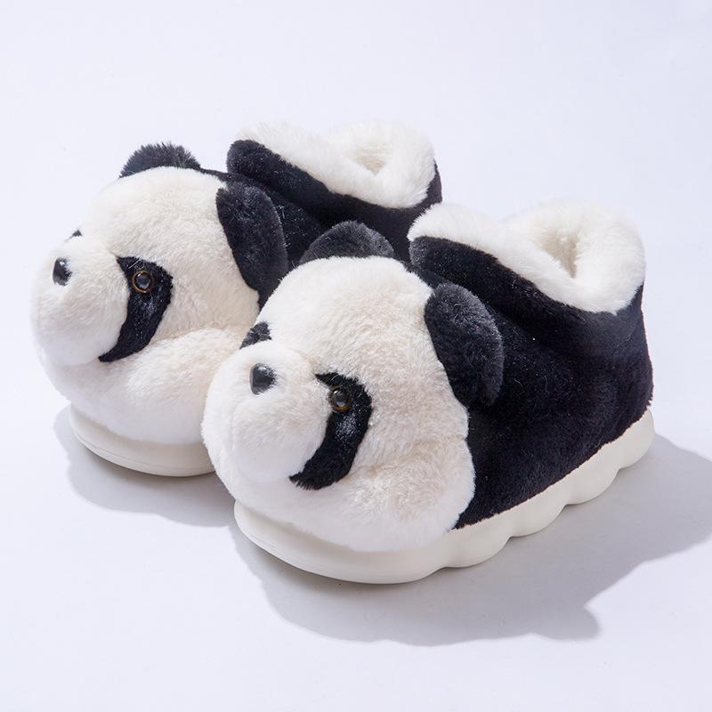 2024 Новые зимние туфли в виде панды для женщин сохраняют тепло, не снимая пинетки, плюшевые тапочки для женщин, кавайные бархатные домашние тапочки в форме животных