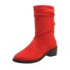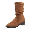 Распродажа женской обуви. Женские сапоги с рукавами. Осенние замшевые сапоги с круглым носком. Модные сапоги средней длины на толстом каблуке. Zapatos De Mujer.