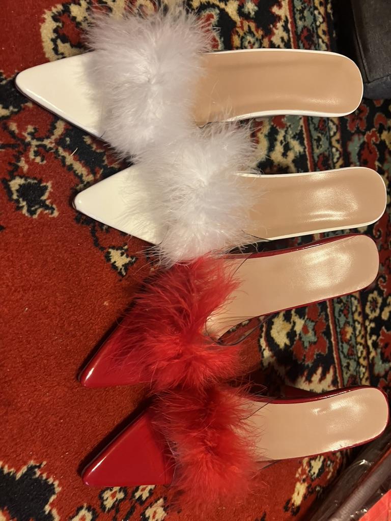 Женские тапочки на высоком каблуке с мехом и шпильками, мюли с открытым носком, женские домашние резиновые туфли Zapatillas Mujer с острым носком, красные, летние, новые сексуальные туфли