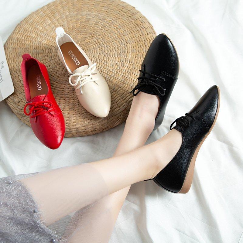 Весенние женские туфли на плоской подошве со шнуровкой на плоской подошве Балетки Легкие женские туфли Удобная обувь с острым носком Туфли-лодочки для бабушки