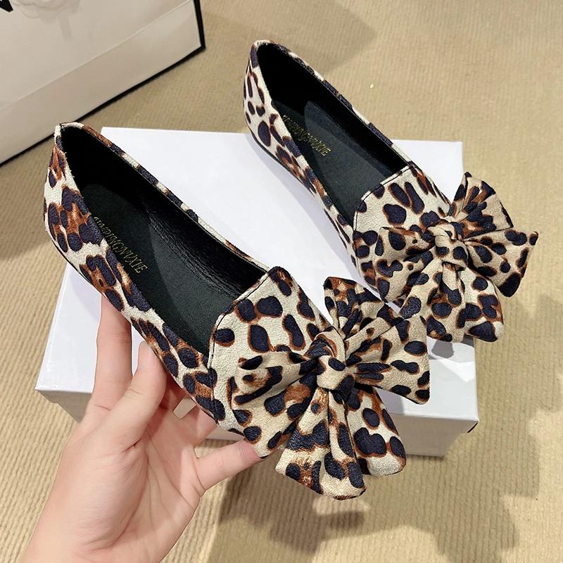2024 Модная женская обувь с леопардовым принтом, женская обувь на плоской подошве, хит продаж, офисные туфли с бантом, сексуальные туфли с острым носком на плоской подошве на низком каблуке