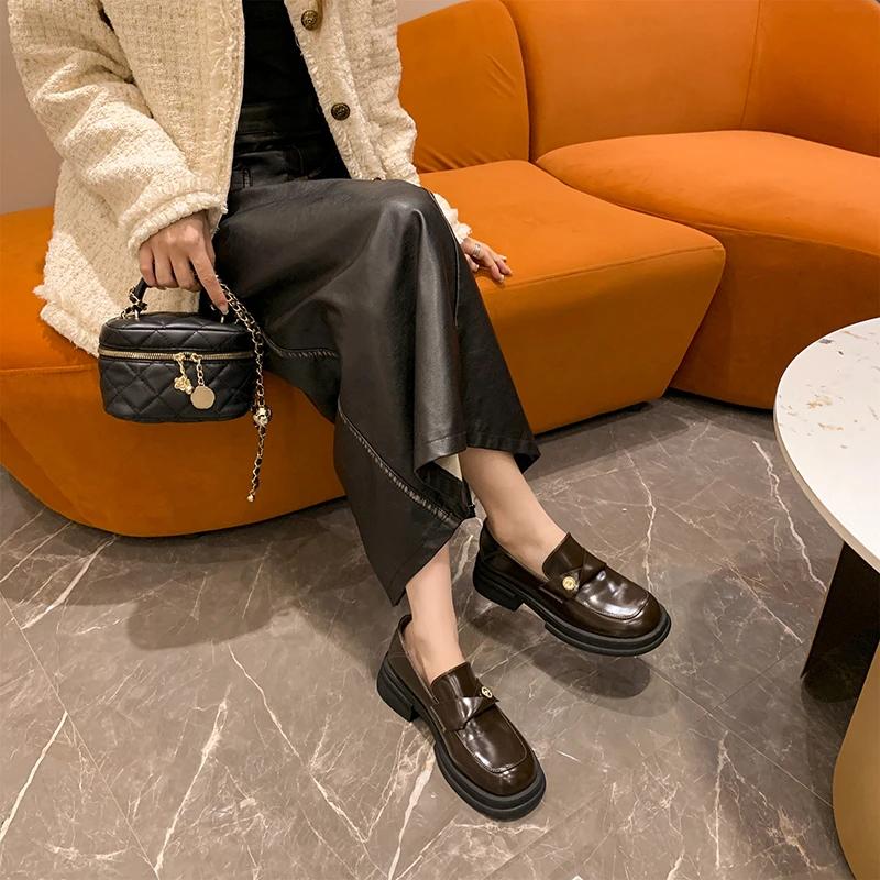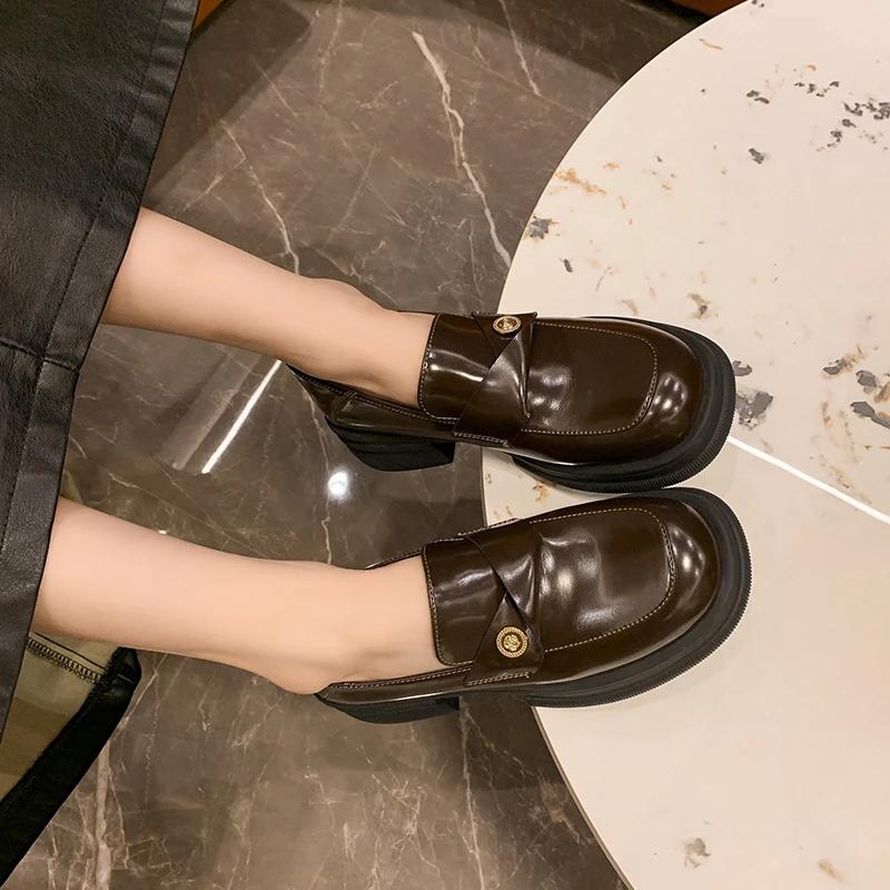 Новая роскошная женская обувь, модная повседневная обувь без шнуровки на квадратном каблуке на среднем каблуке с круглым носком и неглубоким носком, Zapatos Mujer