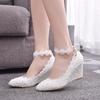 Белые туфли-лодочки на танкетке, свадебные туфли-лодочки, милые белые туфли-лодочки с кружевом и жемчугом, на платформе, классические туфли для невесты на высоком каблуке