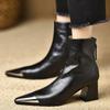 2024 Женская обувь Ботильоны женские Элегантные современные ботинки Женские металлические украшения Острый носок Молния сзади Высокие каблуки Женская обувь