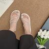 Летние женские тапочки с узким ремешком, модные металлические украшения, слипоны на низком каблуке, женские элегантные шлепанцы, повседневные уличные пляжные шлепанцы