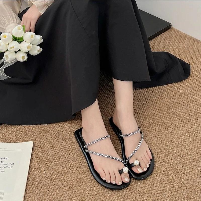 Летние женские тапочки с узким ремешком, модные металлические украшения, слипоны на низком каблуке, женские элегантные шлепанцы, повседневные уличные пляжные шлепанцы — купить товар онлайн с бесплатной доставкой по всему миру!
