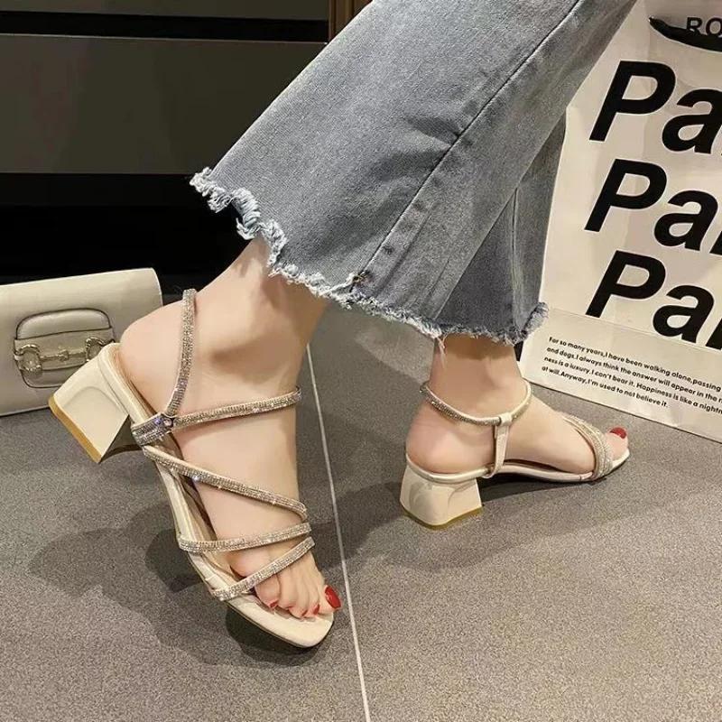 Женские сандалии 2024 года, летние, новые, элегантные, на высоком каблуке, модные, со стразами, с открытым носком, повседневные, большие, женские туфли Caligae