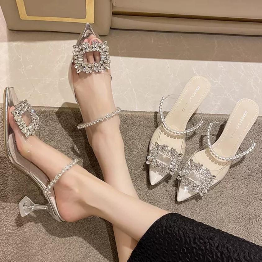 2024 весна/лето тапочки носить обувь сандалии со стразами прозрачные кристаллы туфли на высоком каблуке туфли-лодочки — купить товар онлайн с бесплатной доставкой по всему миру!