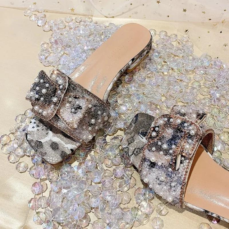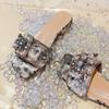 2024 летние модные новые пикантные повседневные удобные однотонные сандалии с кристаллами, тапочки на плоской подошве с квадратным носком, Zapatos Mujer