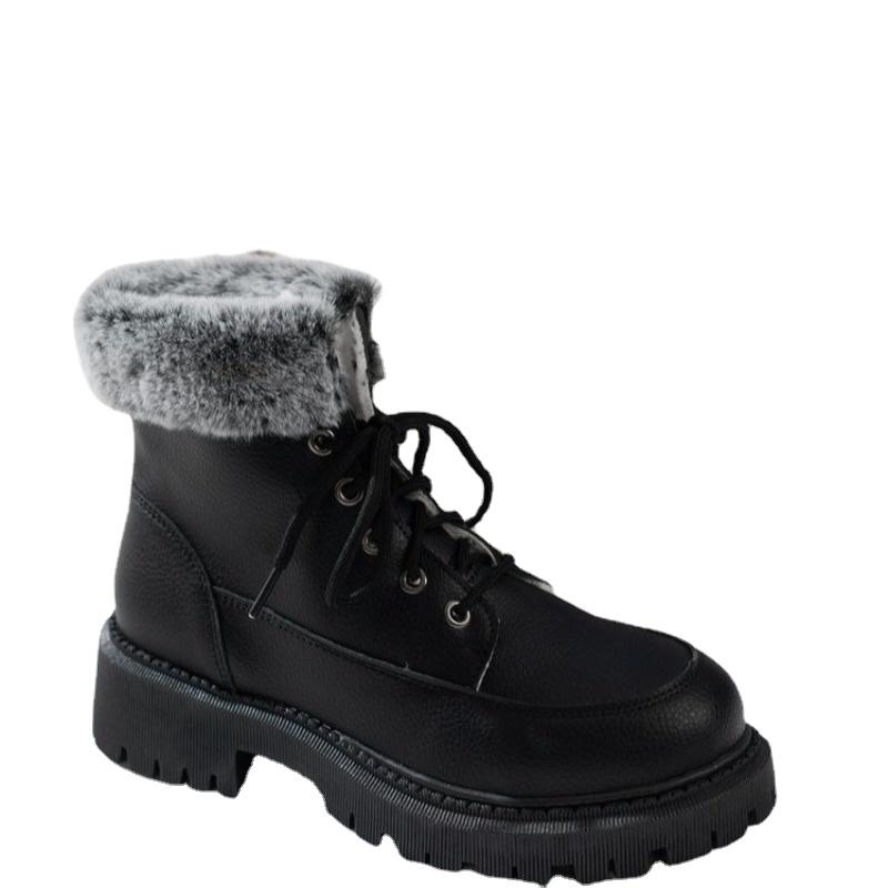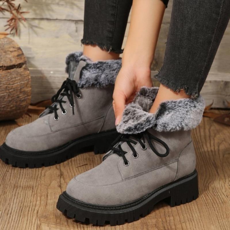 Обувь для женщин 2024 года, зимние новые меховые женские сапоги, плюшевые теплые женские короткие сапоги-бочонки, повседневные мотоциклетные ботинки на шнуровке для активного отдыха
