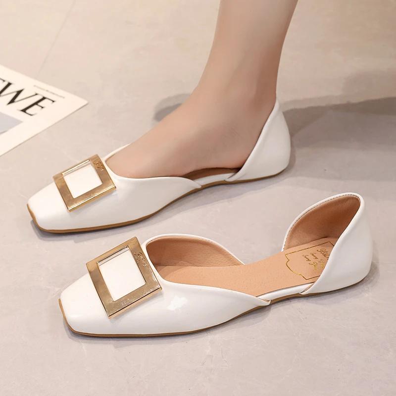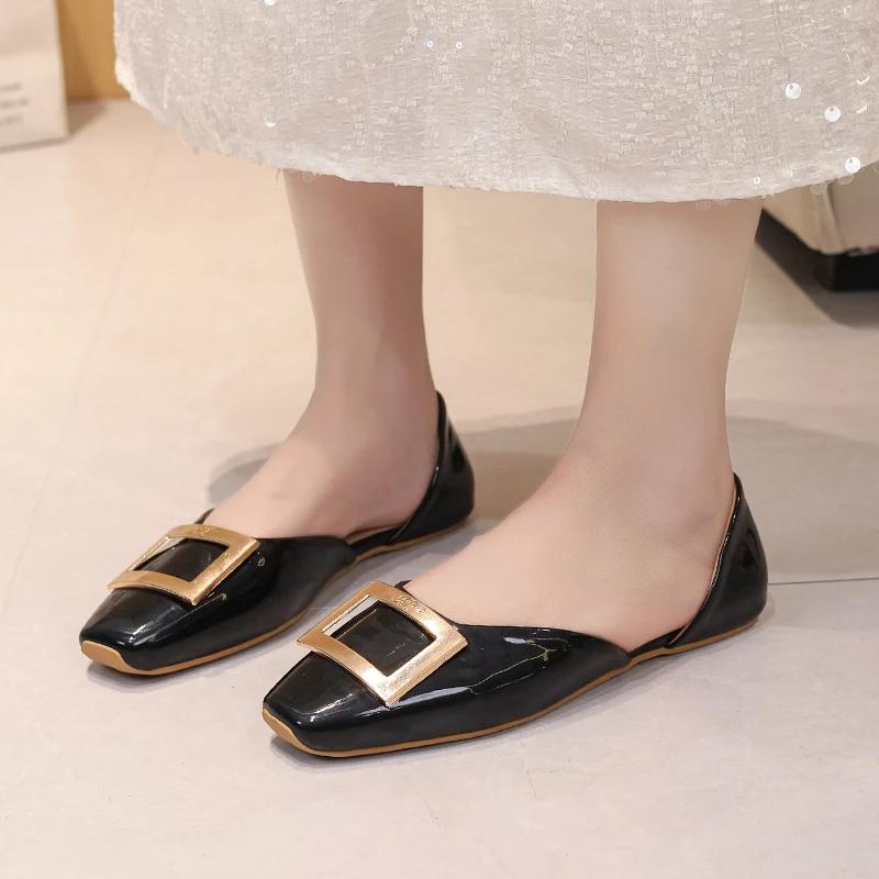 2024 Новая весенняя и осенняя женская обувь Модные квадратные носки с неглубоким носком однотонные кожаные женские туфли на плоской подошве