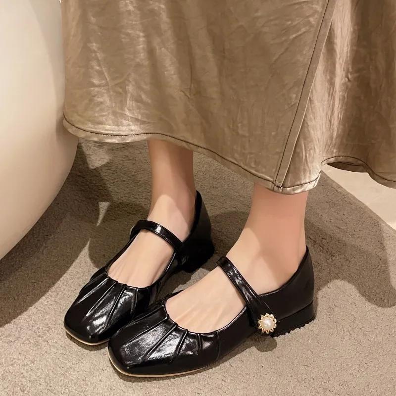 2024 Модные популярные женские туфли Плиссированные универсальные весенние и осенние женские туфли на одну ногу с неглубоким горлом Удобные