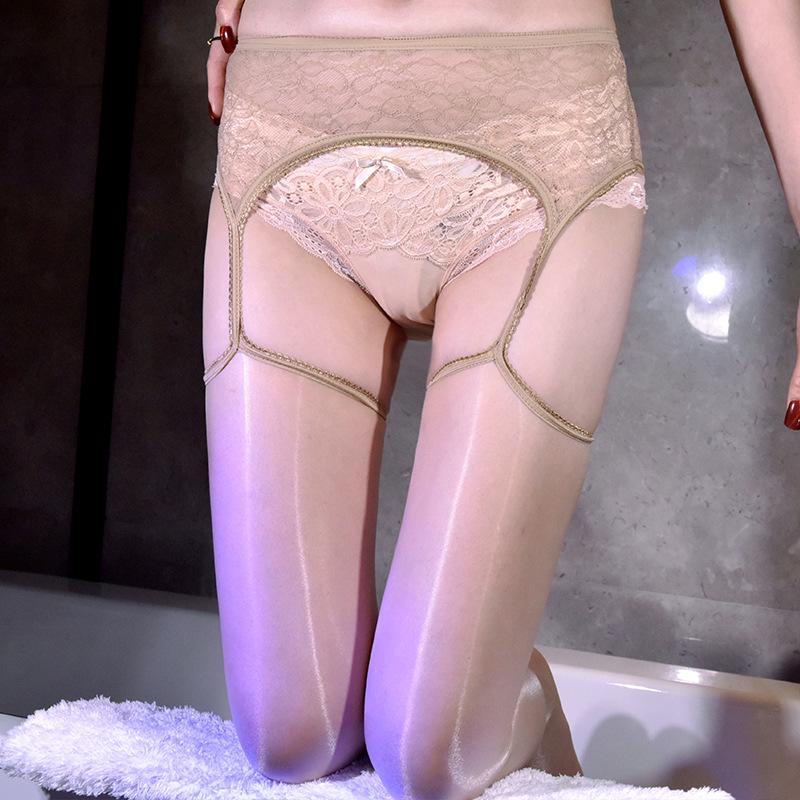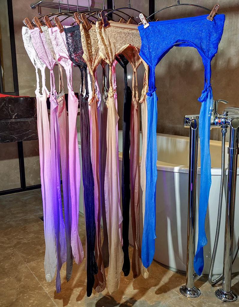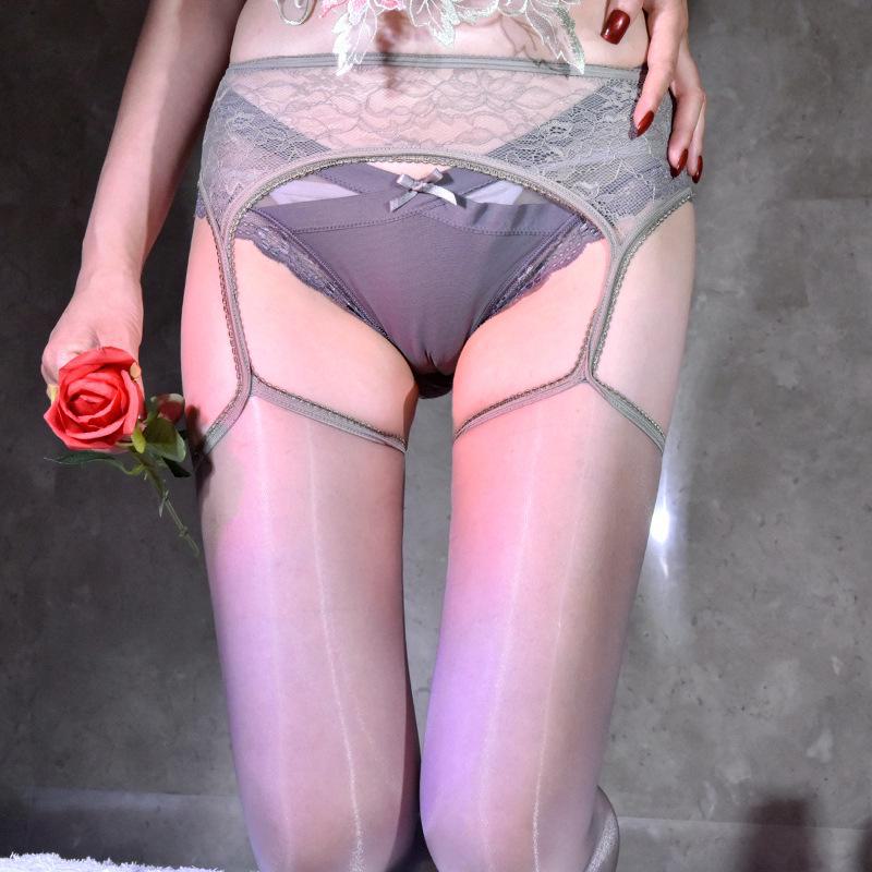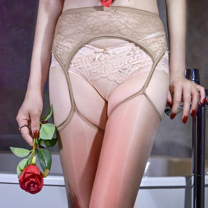 Ультратонкие кружевные чулки Aurora с подвязками, черным носком и открытой промежностью