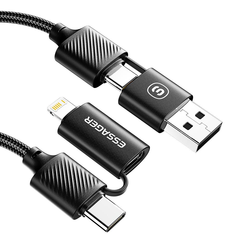 ESSAGER 65W PD Быстрая зарядка Кабель для передачи данных 4-в-1 для компьютера и мобильного телефона