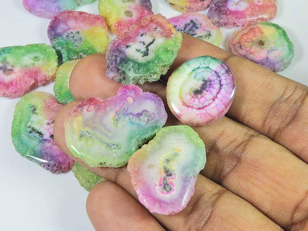 AAA окрашенный солнечный друзовый кварцевый срез кабошон россыпью драгоценный камень 19 шт. лот 19-30 мм RQ-2761