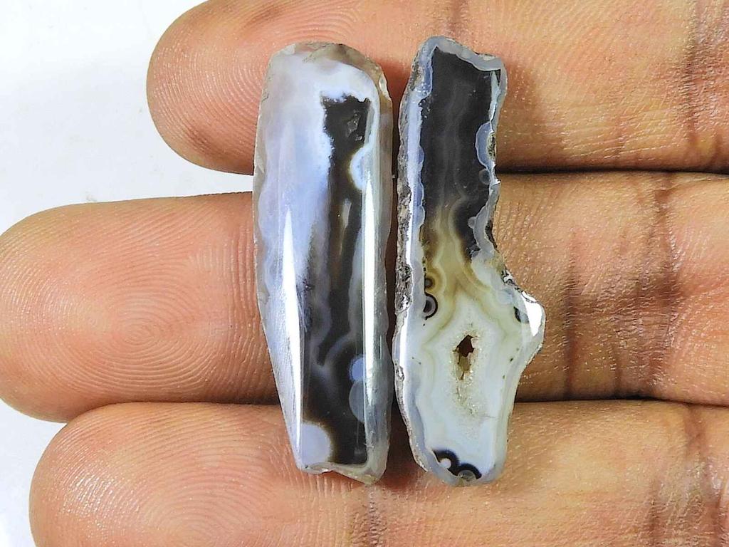 28 карат черный срез окрашенного друзового агата, пара, фантазийные россыпные драгоценные камни 10X33 мм SK-2229