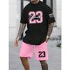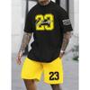 Мужской летний комплект из двух предметов Нет. Футболка с принтом в виде 23 букв, повседневные шорты с короткими рукавами, мужская летняя одежда в тон