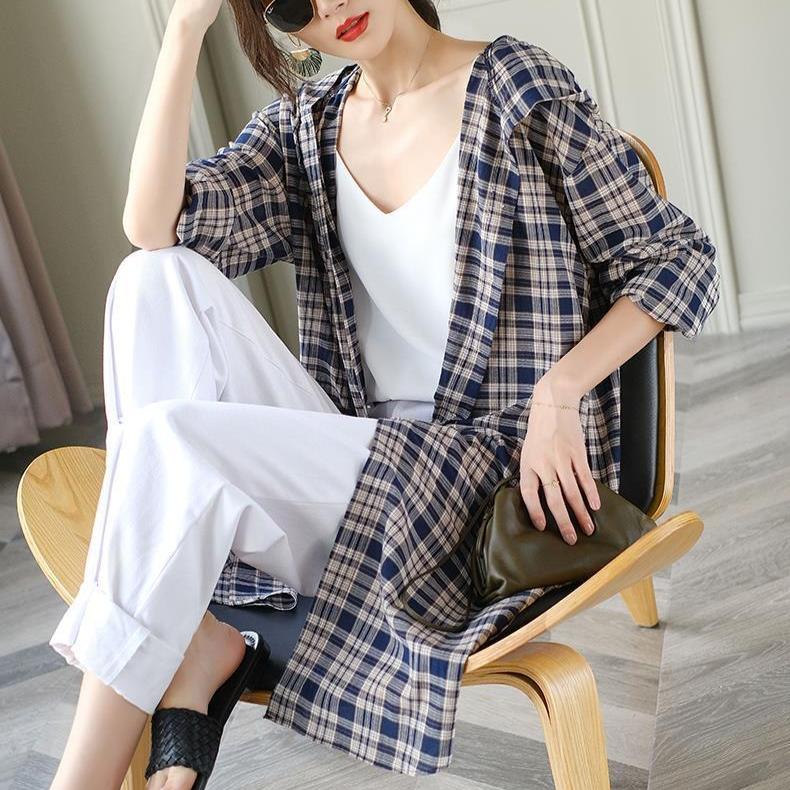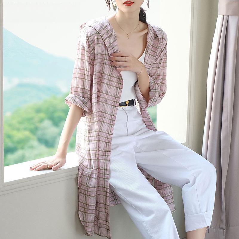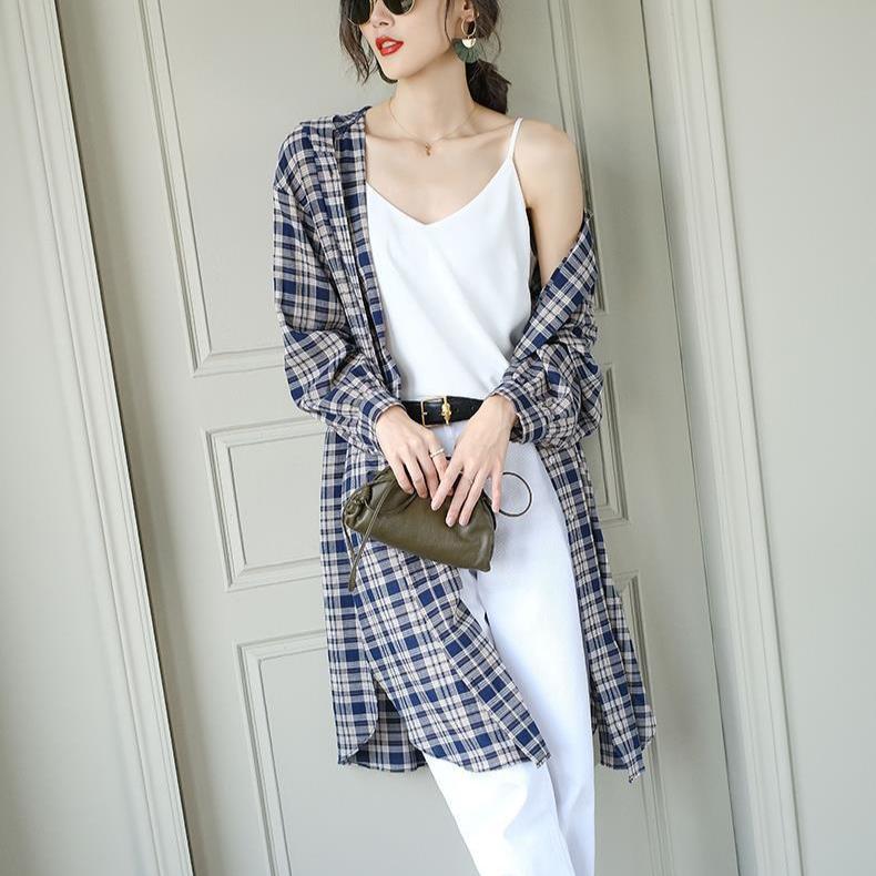Летняя одежда с капюшоном для защиты от солнца для женщин, свободная, средней длины, универсальная, повседневная рубашка, парная, тонкая шаль, куртка