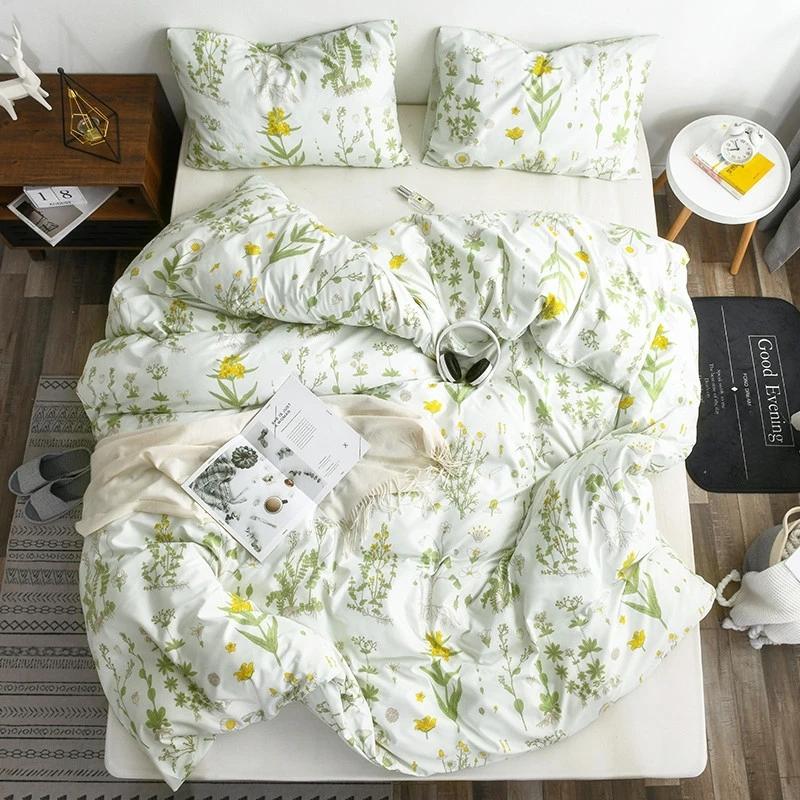 Комплект постельного белья с цветочным принтом Queen, мягкий, удобный, односпальный, двуспальный, пододеяльник, комплект постельного белья King Size, покрывала с цветочным узором, без простыней