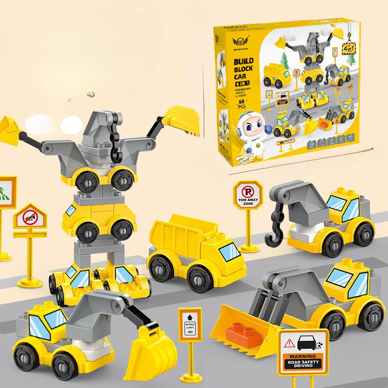 Игрушка-конструктор с деформацией крупных частиц, сборка-головоломка для инженерной машины «четыре в одном», подходит для мальчиков и девочек