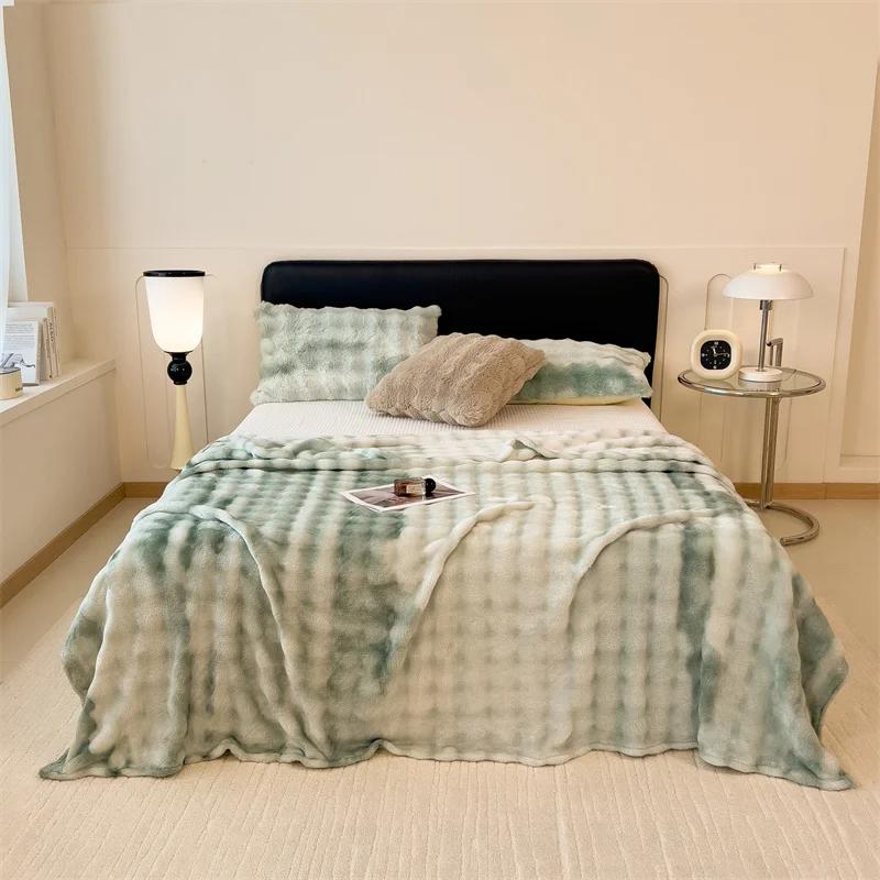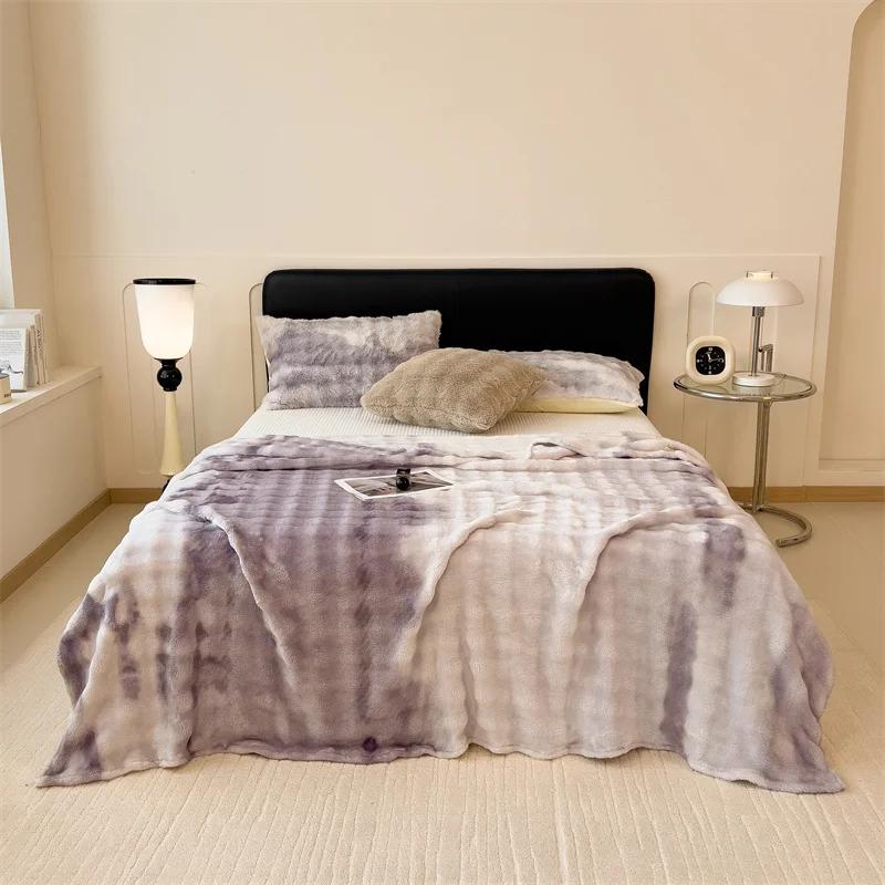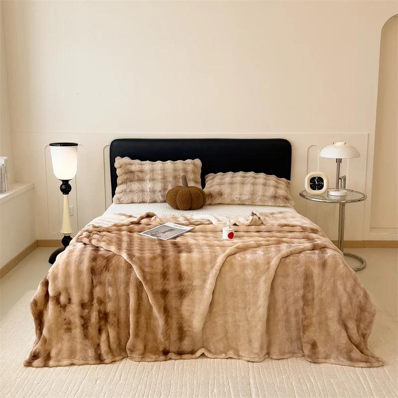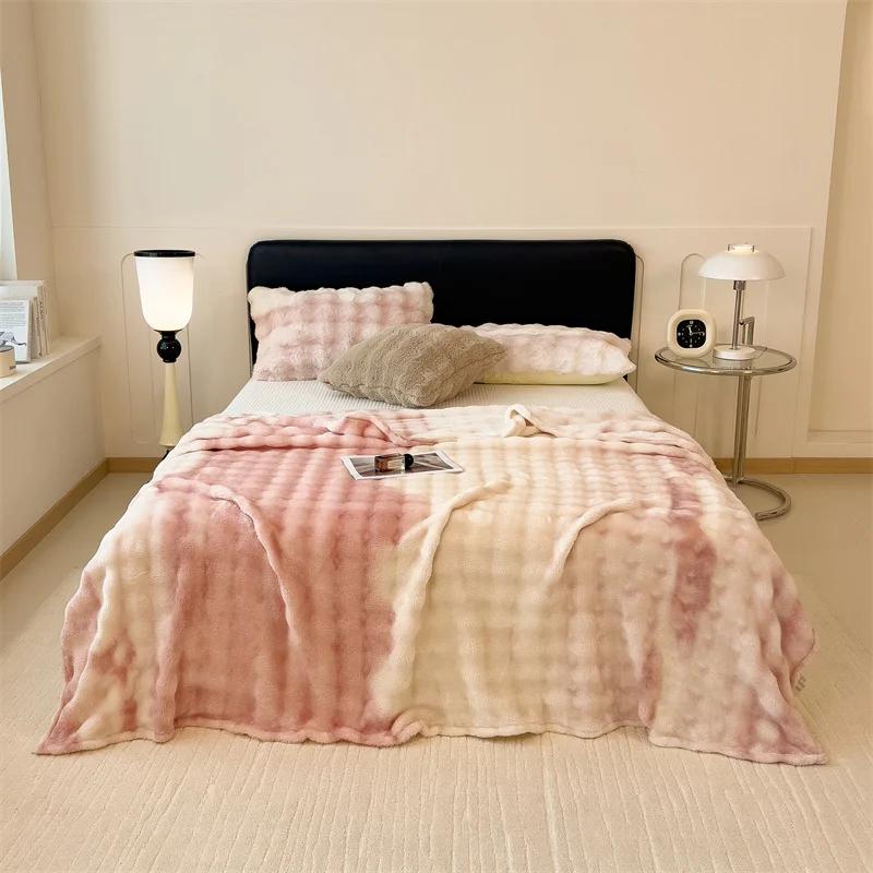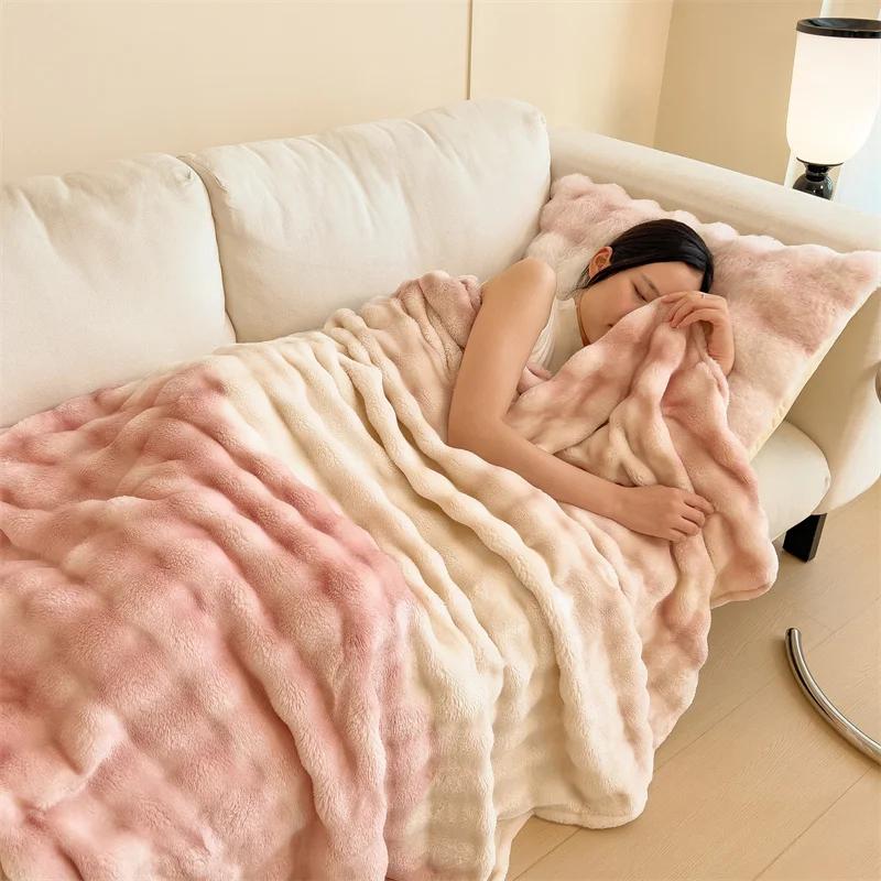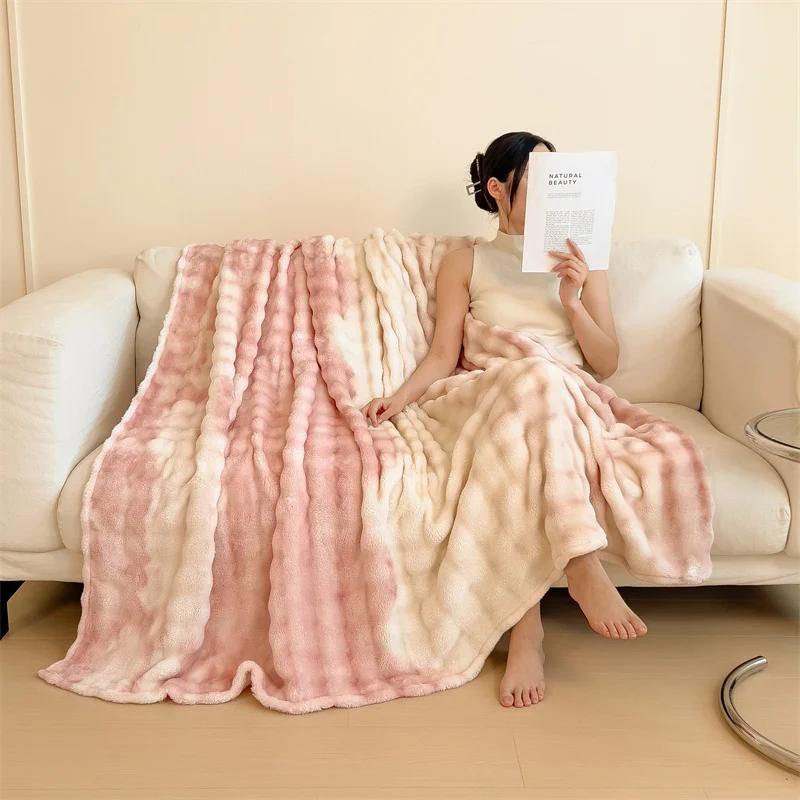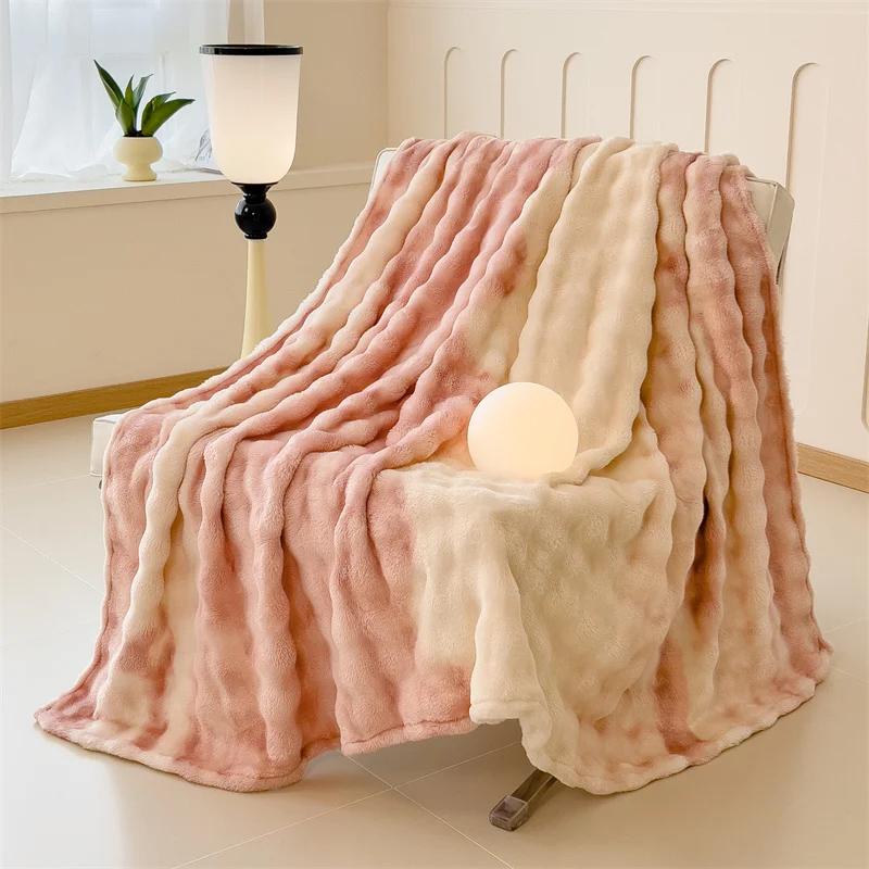 Пушистое одеяло для кроватей, плюшевые пледы с кроликом для дивана, теплое одеяло Thow, градиентное цветное одеяло для зимы, королевские/королевские одеяла