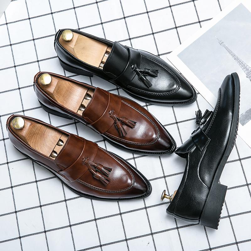 Весна Осень Классические Стильные Деловые Мужские Лоферы Британский Стиль Кисточки Слипоны Туфли С Острым Носом Мужские Повседневные Кожаные Туфли