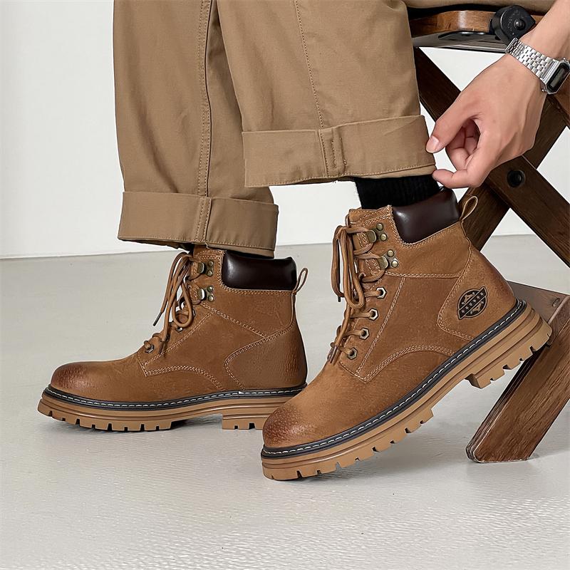 Новые ботинки Мужские ботинки с высоким голенищем Мужская кожаная обувь Зимняя мода Теплая обувь Уличные кроссовки На шнуровке Нескользящие ботильоны Мужские