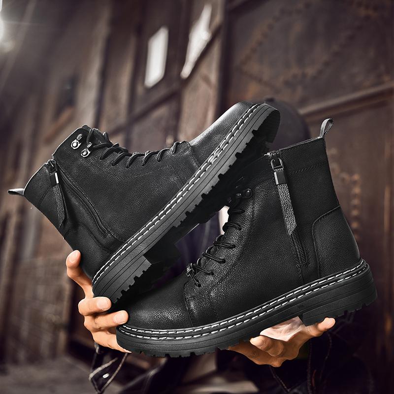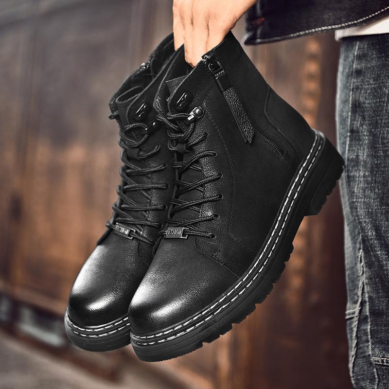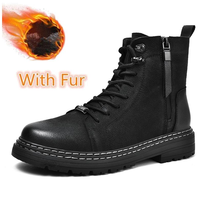 Роскошные брендовые мужские ботильоны, повседневная обувь, черные панк-ботинки из натуральной кожи, зимние меховые теплые мужские мотоциклетные ботинки со шнуровкой