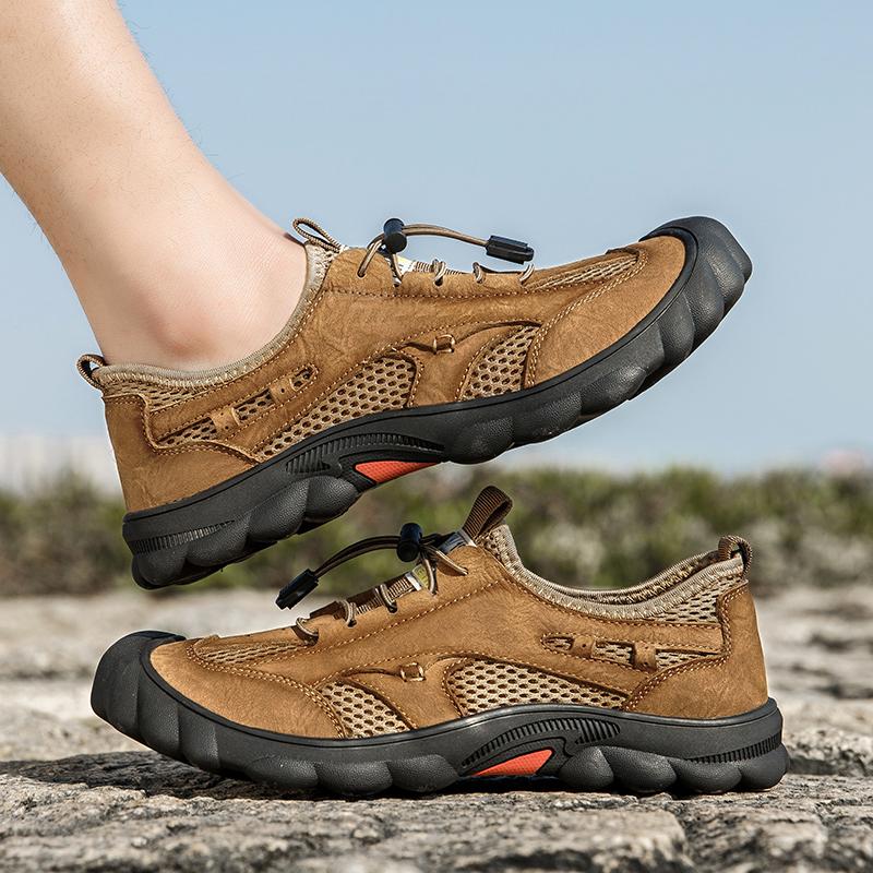 Нескользящие мужские походные туфли из натуральной кожи, дышащие мужские повседневные кроссовки со шнуровкой и сеткой, летняя обувь для активного отдыха — купить товар онлайн с бесплатной доставкой по всему миру!