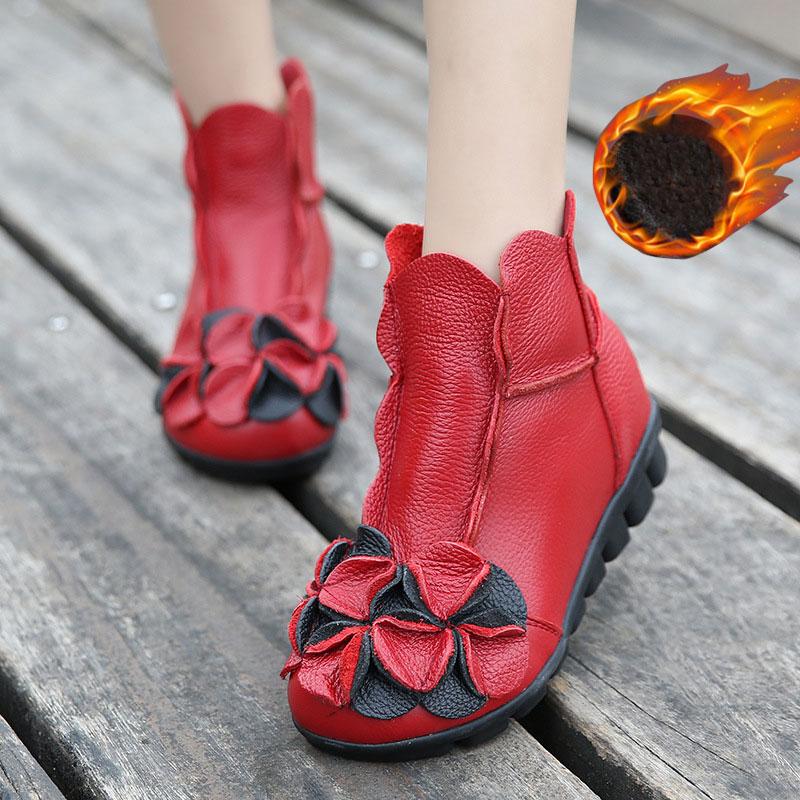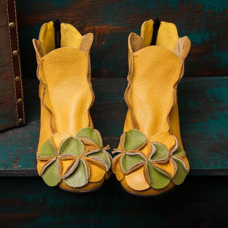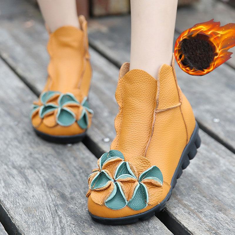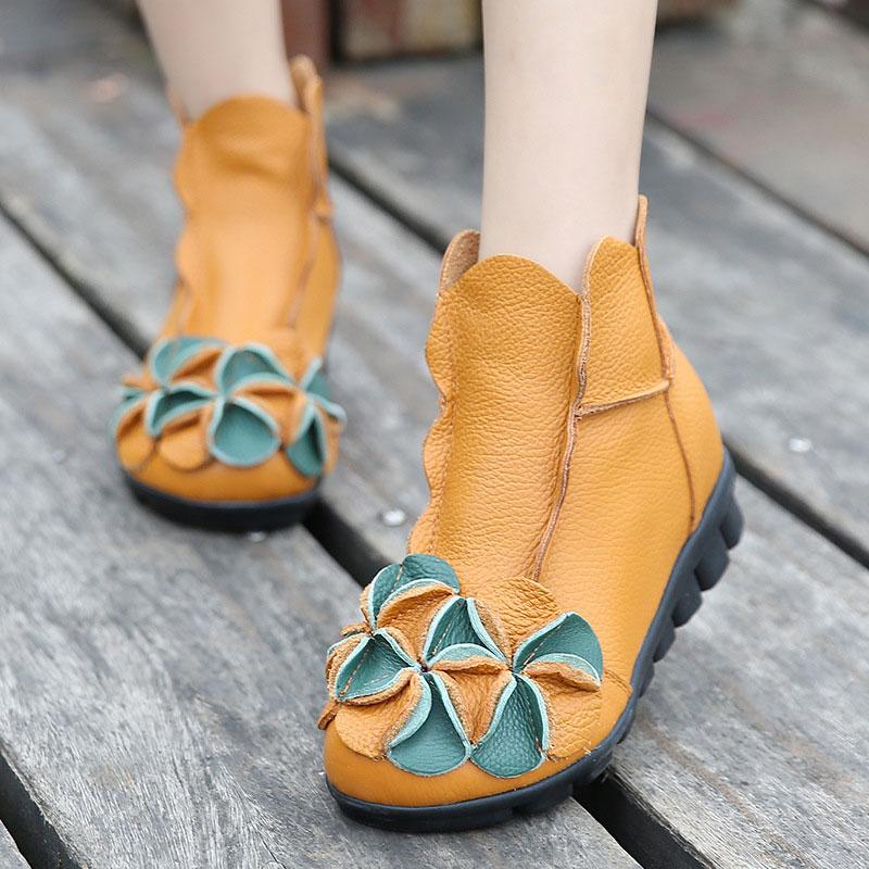 Желтые кожаные сапоги Guenine Flower 2024 года, ботильоны из мягкой натуральной кожи, туфли для мам 2024 года, классические ботильоны в стиле ретро