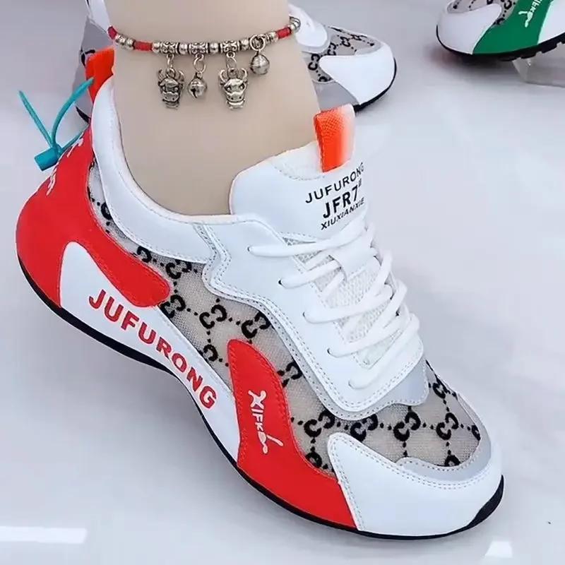 Женские повседневные кроссовки с летним принтом, модные дышащие сетчатые спортивные туфли на шнуровке для женщин, обувь для ходьбы на платформе Zapatos De Mujer