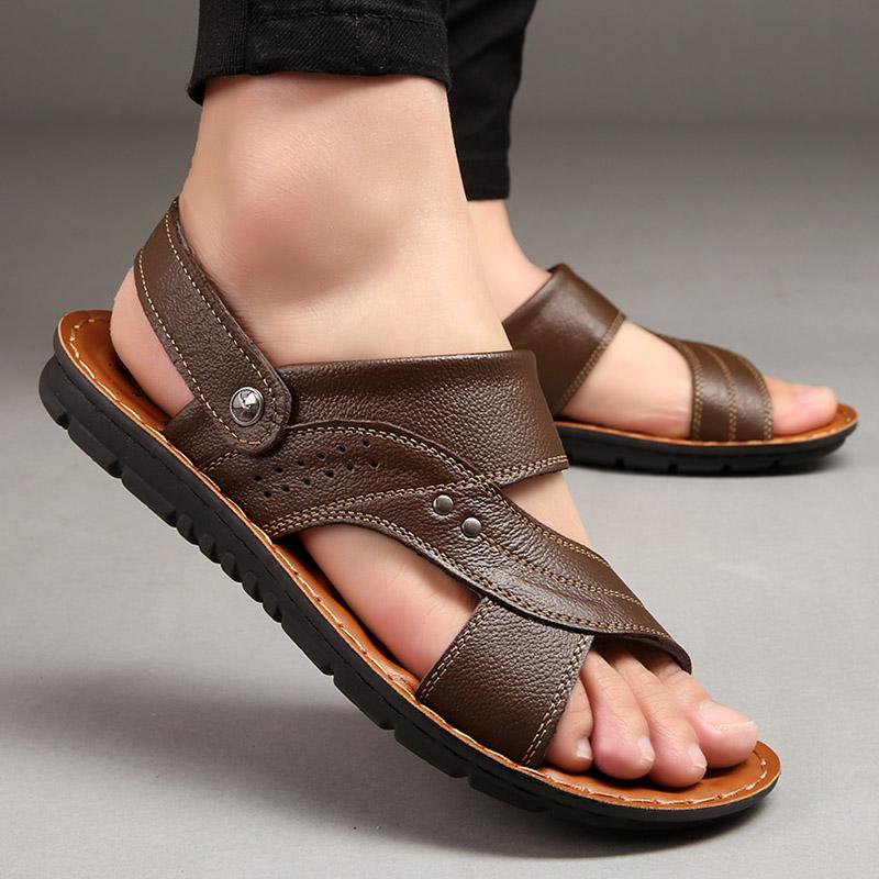 Новые модные винтажные мужские туфли из коровьей кожи с массажной подошвой, мягкие дышащие повседневные туфли на плоской подошве, летние пляжные сандалии, тапочки, шлепанцы — купить товар онлайн с бесплатной доставкой по всему миру!