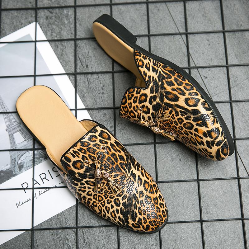 Лакированные кожаные туфли Loepard Mules Мужские полуботинки Модная дизайнерская обувь Мужская роскошная повседневная обувь без застежек Британская клубная обувь Лоферы