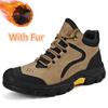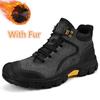 Новые мужские походные ботинки из натуральной кожи, зимние меховые короткие ботинки на платформе, модная повседневная обувь на шнуровке для мужчин, ботинки для активного отдыха