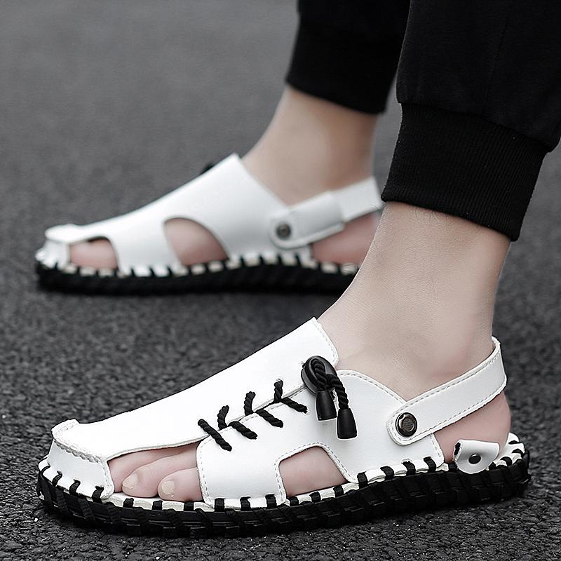 Модные мужские сандалии ручной работы, прочные, для отдыха на природе, пляжная обувь, мужские летние, удобные, легкие, дышащие, нескользящие, черно-белые сандалии