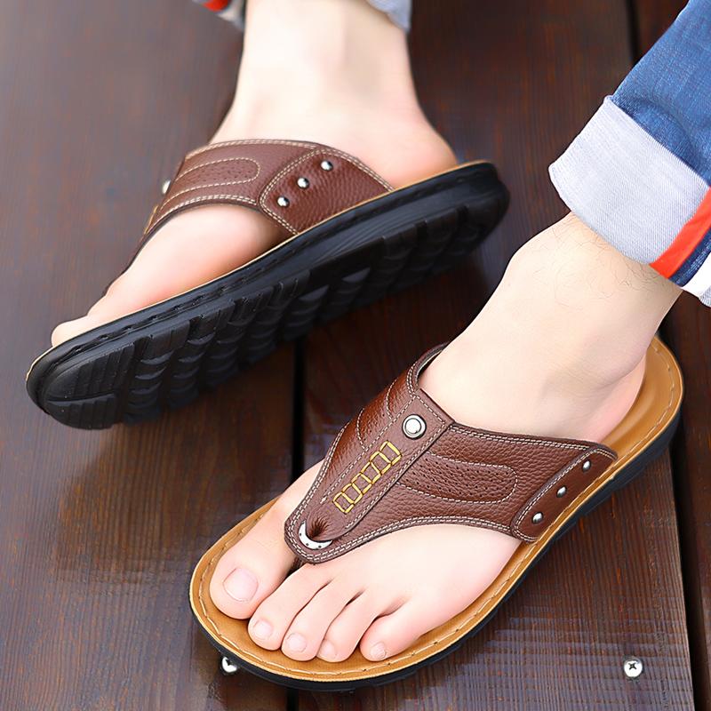 Абсолютно новые мужские шлепанцы из воловьей кожи, повседневная пляжная обувь, модные мужские удобные сандалии на мягкой подошве с нескользящей подошвой — купить товар онлайн с бесплатной доставкой по всему миру!