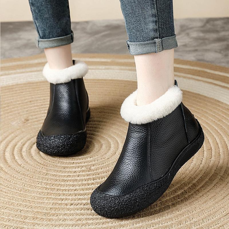 Новые модные зимние сапоги женские из коровьей кожи с меховой подкладкой теплые пушистые зимние сапоги женские на молнии черные короткие сапоги