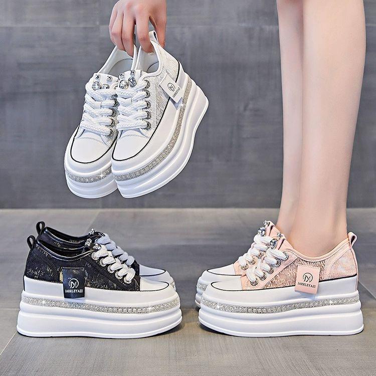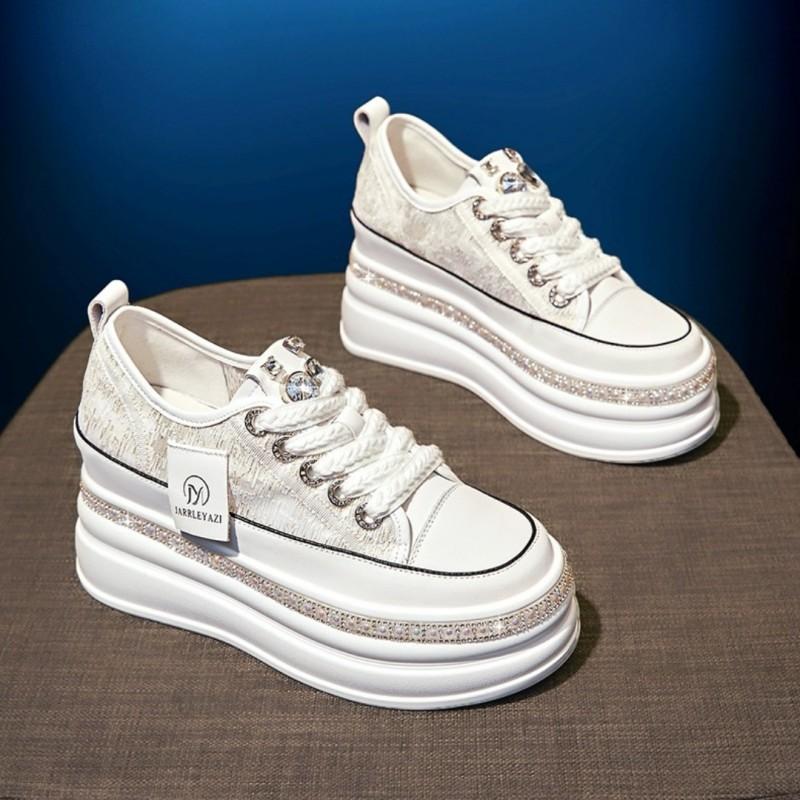 Женская повседневная уличная обувь на платформе 8 см, блестящие украшения со стразами, кроссовки на шнуровке, прогулочная спортивная дышащая обувь на толстой подошве