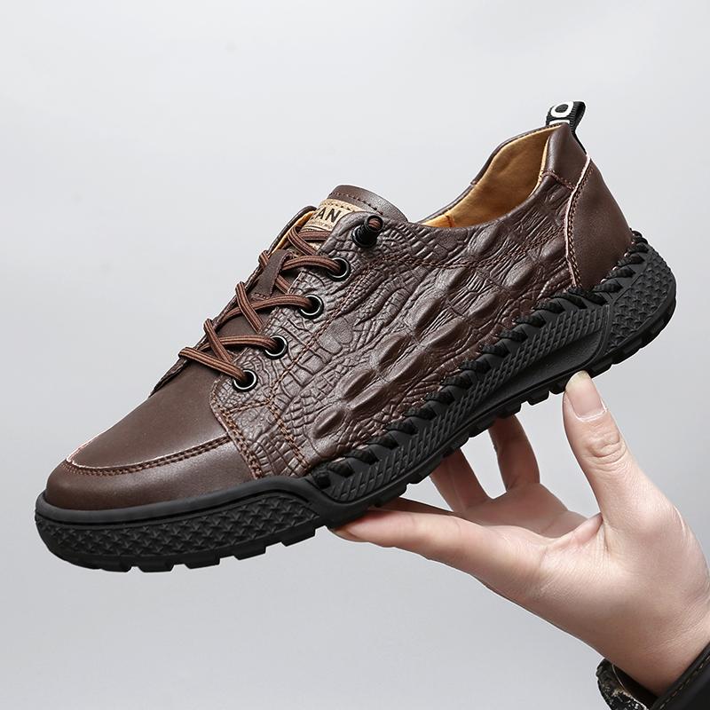 Мужские повседневные кожаные туфли с крокодиловым узором, мужские кроссовки в винтажном стиле, спортивная обувь для активного отдыха, обувь ручной работы со шнуровкой, походная обувь