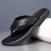 Брендовые летние мужские удобные плетеные кожаные шлепанцы модная версия нескользящие мягкие подошвы клипсы тапочки набор тапочки
