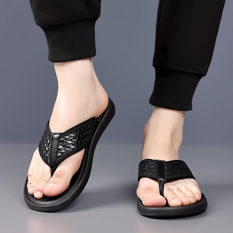 Брендовые летние мужские удобные плетеные кожаные шлепанцы модная версия нескользящие мягкие подошвы клипсы тапочки набор тапочки — купить товар онлайн с бесплатной доставкой по всему миру!