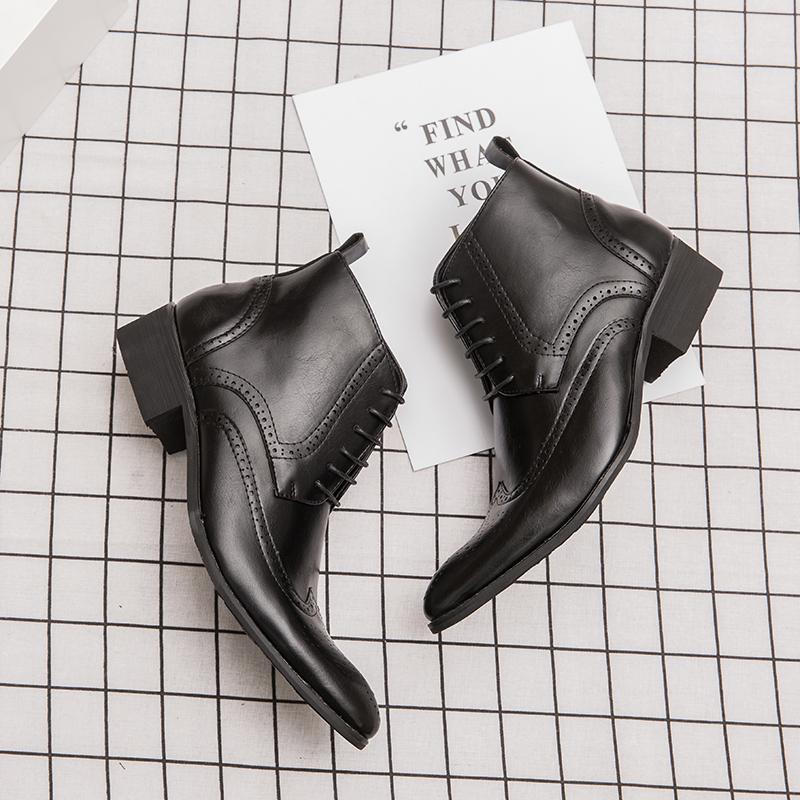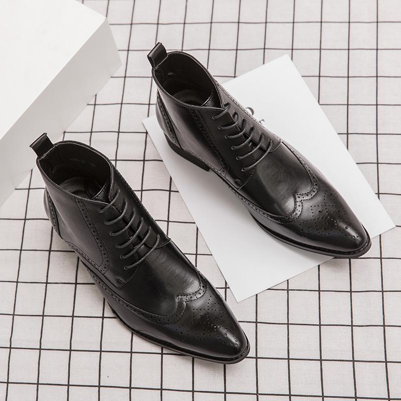 Новые высокие мужские туфли-броги на шнуровке, свадебные ботильоны, мужские ботильоны, заостренные британские формальные ботинки, повседневные кожаные оксфордские ботинки