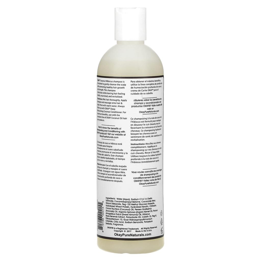 Okay Pure Naturals, Кокосовый гибискус, глубоко увлажняющий, шампунь, 12 жидких унций (355 мл)