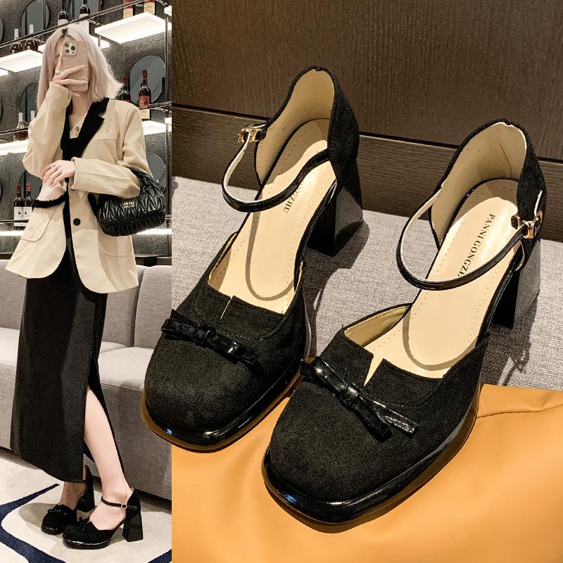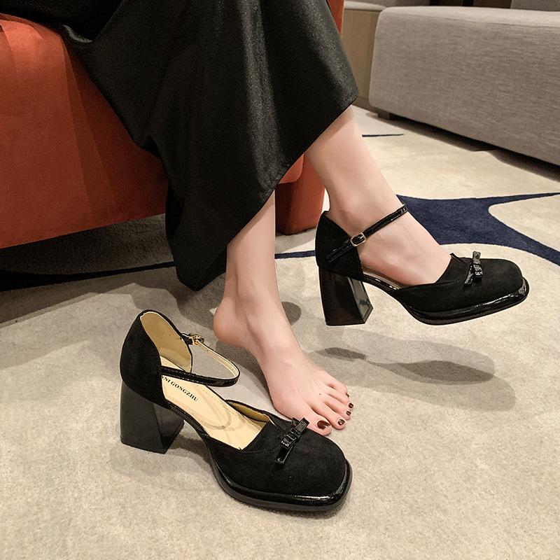 Ретро легкие зрелые элегантные босоножки с полым носком 2024 новые универсальные простые толстые каблуки с пряжкой на высоком каблуке