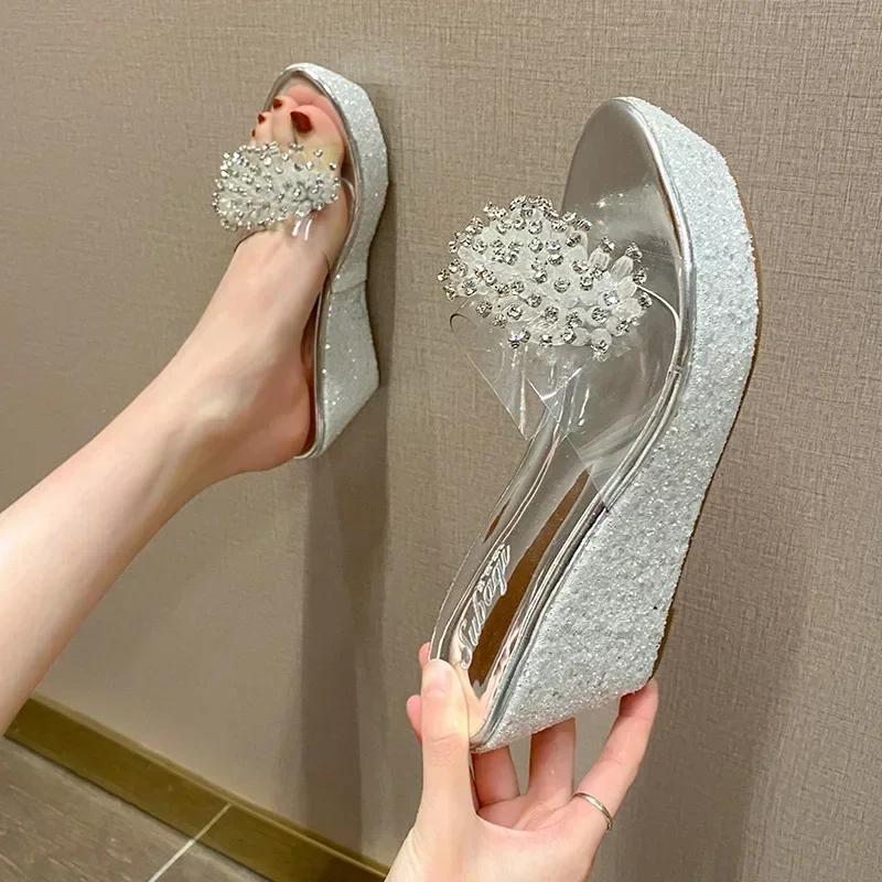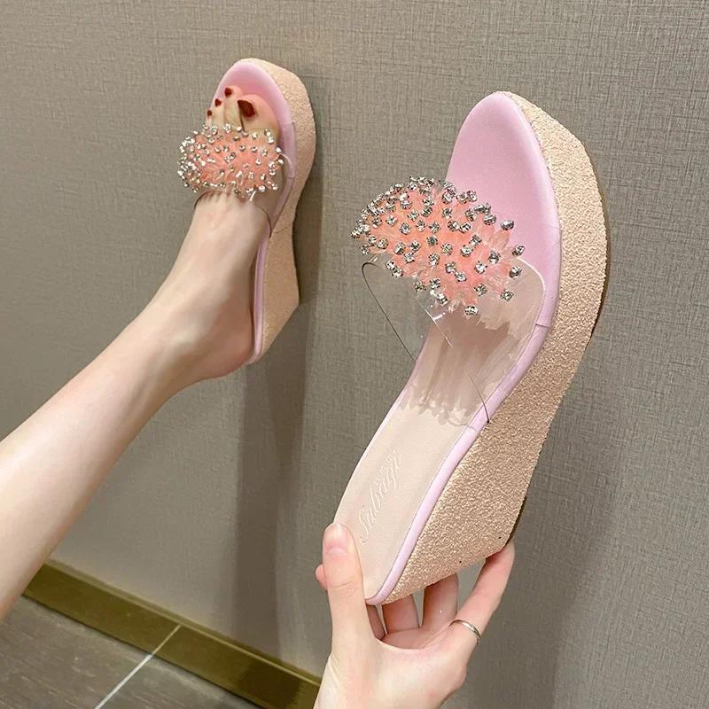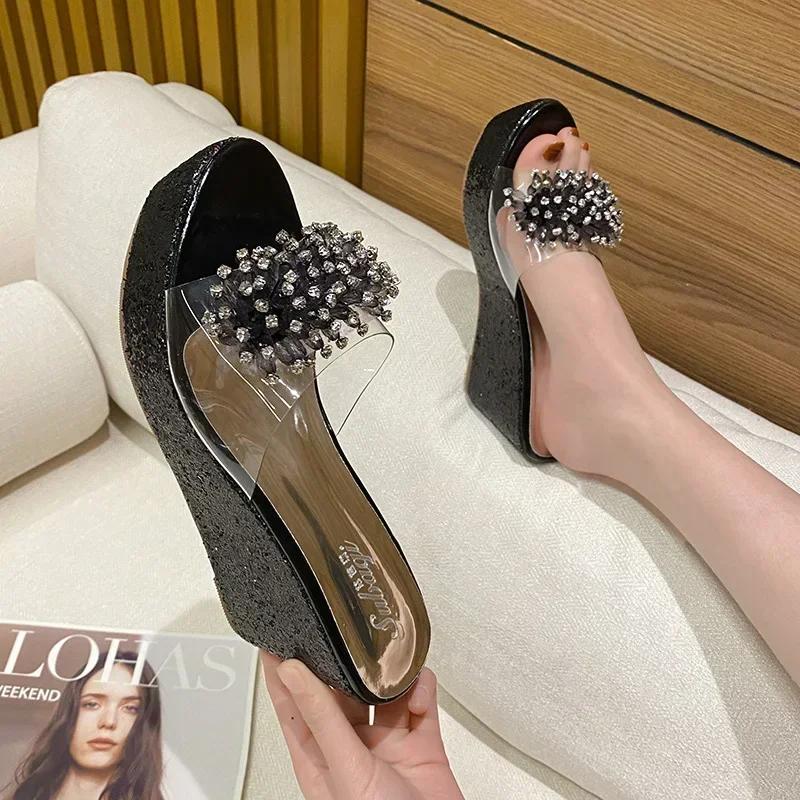 Летние новые босоножки на танкетке с высоким каблуком 8 см, водонепроницаемая платформа, прозрачный носок рыбы