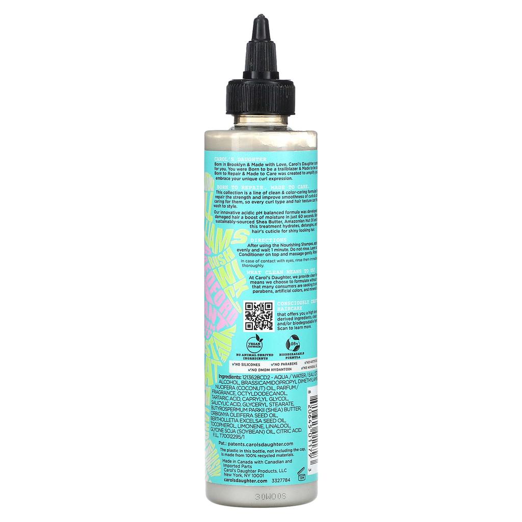 Описание товара: Продукт произведен с заботой в Бруклине (&Сделано, чтобы заботиться) Система Биоразлагаемая 98% формула - Уход за волосами, сделанный с большой заботой Содержит масло ши и масло бабассу Без силикона DMDM Без гидантоина Веганская формула 98% биоразлагаемая формула: Не содержит искусственных красителей и минеральных масел. Carol's Daughter — бренд, созданный в Бруклине и созданный с любовью. Carol's Daughter — это то, что вам нужно.. Куратор. Вы рождены, чтобы хотеть быть первопроходцем и не извиняться.. Born to Repair & Made to Care создан для укрепления вашего голоса и создания уникальных локонов.. Он создан для восстановления. Эта коллекция средств по уходу представляет собой набор чистых, сохраняющих цвет формул, которые ухаживают за вашими локонами, восстанавливая их силу и улучшая мягкость, позволяя всем типам и текстурам кудрей процветать от мытья до укладки.. Наша инновационная формула со сбалансированным уровнем кислотности и pH разработана для увлажнения всего за 60 секунд. В состав этого средства входят масло ши, масло амазонского ореха и масло бабассу, полученные экологически чистым способом. Оно увлажняет, распутывает и защищает кутикулу волос, придавая им блеск. Что для нас означает чистота? ?Carol's Daughter предлагает чистые формулы, не содержащие сульфатов, парабенов, искусственных красителей и минеральных масел — ингредиентов, которые многие потребители не используют.