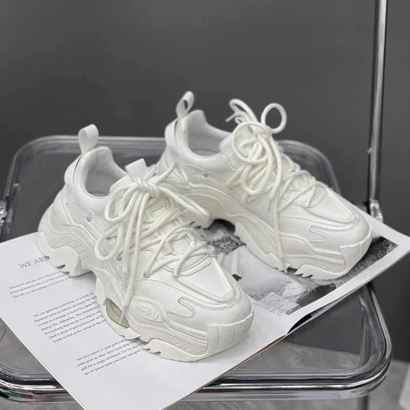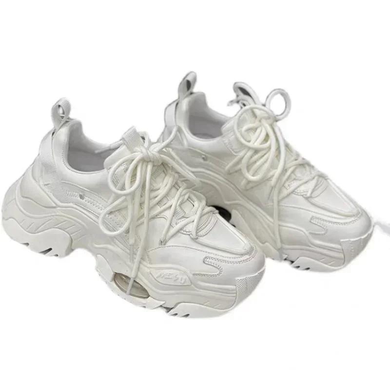 Весна 2024 Новые туфли для папы, дышащие женские кроссовки на платформе, однотонные, повседневные туфли, женские, маленькие белые туфли