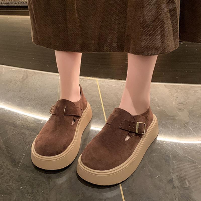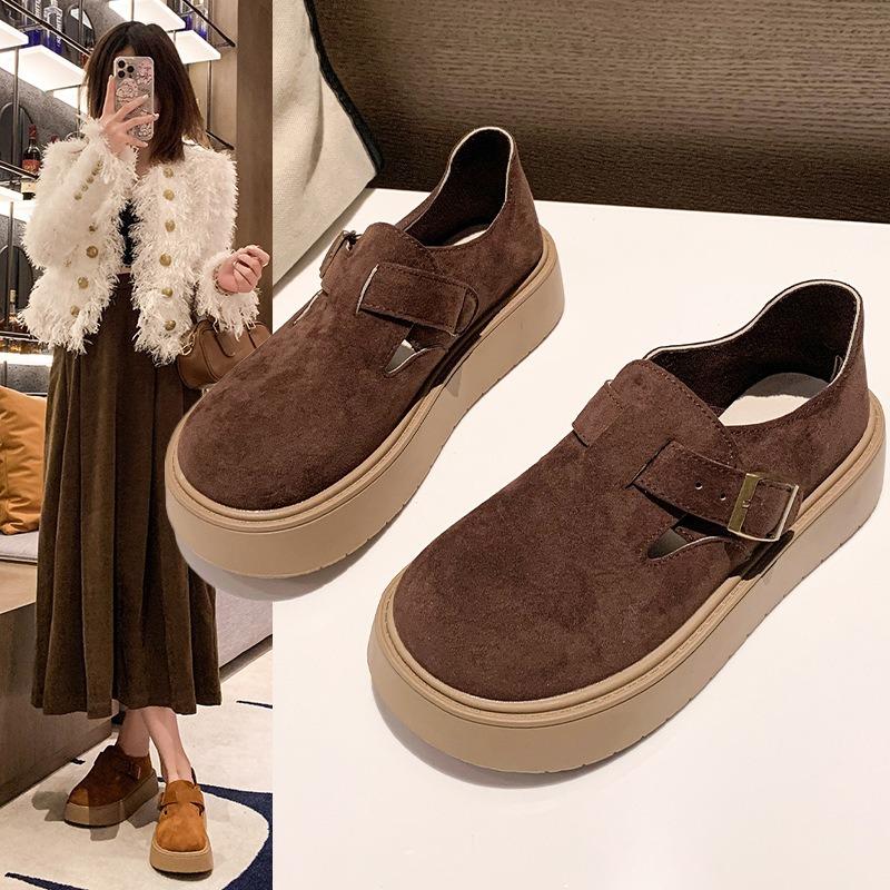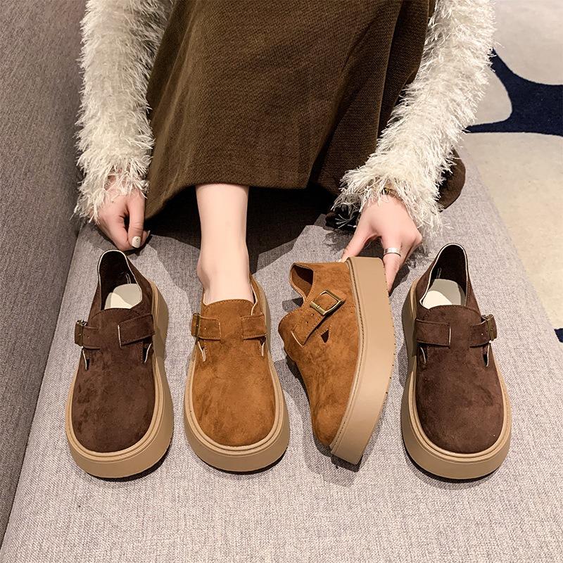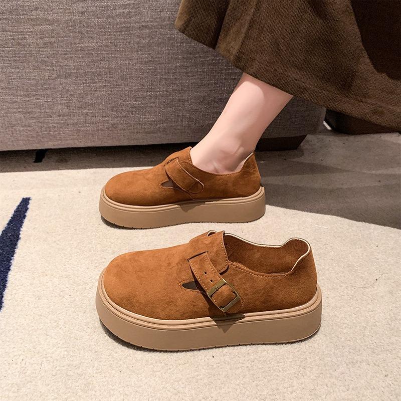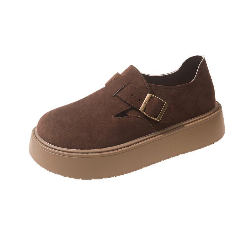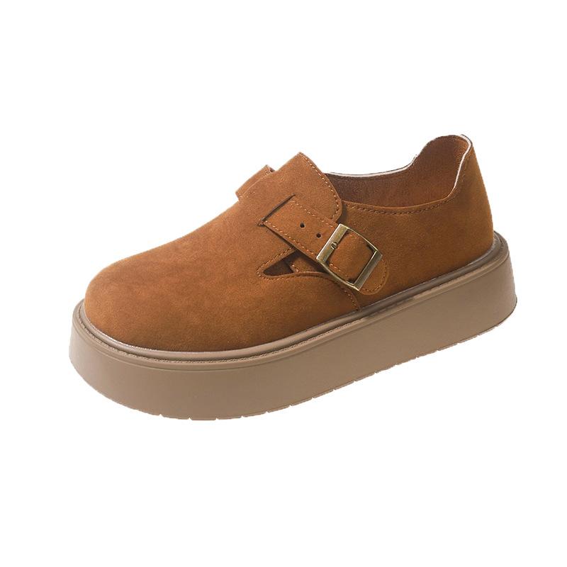 Женская обувь 2024 года, осенняя платформа, удобная, противоскользящая, одинарная, новая, японская, с пряжкой на ремне, увеличивающая рост, уличные мокасины