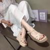 Женские босоножки на танкетке с открытым носком и пряжкой. Женские туфли на платформе и каблуках. Классические летние туфли на очень высоком каблуке для женщин. Туфли в стиле Лолиты.