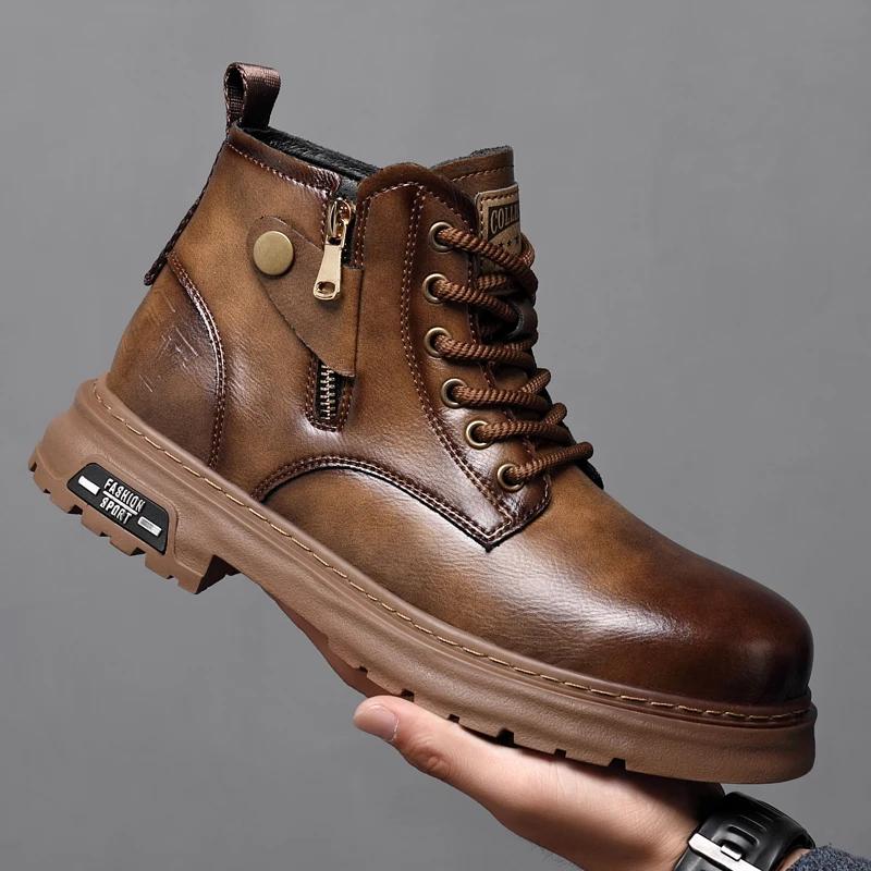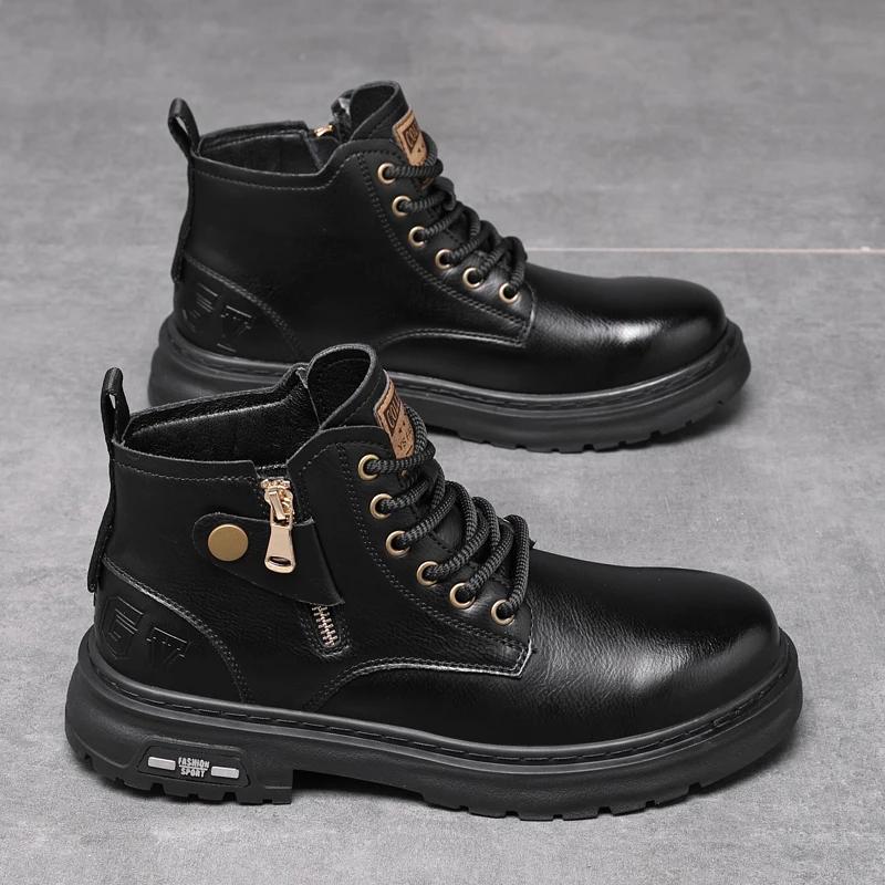 Новые высококачественные мужские повседневные ботинки Chelsea из натуральной кожи, мужская обувь, высокие модные водонепроницаемые мотоциклетные ботинки, оксфорды